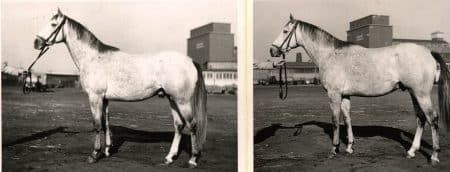Aus der Konstanze stammt der Schimmelhengst Risotto (geb. 1977, v. Raimond, Z.: Friedrich Dehn, Süderholz), der nur eine Saison im Deckeinsatz war (1980 Elmshorn) und nach einer mäßigen Hengstleistungsprüfung verkauft wurde. Er verfügte über gute Bewegungen und zeigte sich leichtrittig. Auch die wenigen Nachkommen waren handliche, leicht händelbare Pferde. Risotto taucht in einigen Pedigrees von Hengsten und Leistungspferden bis heute auf. Eine weitere Halbschwester der Juwel ist die 1977 geborene Landgraf I-Tochter Ophelia, die mit dem Ramiro-Sohn Rinaldo den wertvollen Vererber Reichsgraf lieferte, der leider nur fünf Jahre (1985-1989 in Hademarschen) der Zucht zur Verfügung stand und bereits 1990 wieder abtrat. Reichsgraf (Z.: Gabriele Dehn, Süderholz) war bei auffallender Größe ein sehr harmonischer Hengst im Typ seines Großvaters Ramiro, mit viel Riss, schönem Gesicht und großzügiger Halsung. Er verfügte über ausdrucksvolle Bewegungen und Springvermögen mit auffallender Technik. Reichsgraf lieferte ausdrucksvolle Nachkommen in guter Größe mit viel Bewegung. [ihc-hide-content ihc_mb_type=“show“ ihc_mb_who=“4,3″ ihc_mb_template=“3″ ]