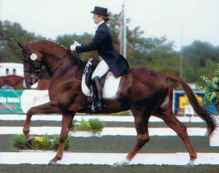 Von der Vererbung her hinterließ er in dieser Zeit „viel Qualität“, achten mussten die Züchter bei der Anpaarung allerdings auf den möglichst optimalen Rahmen der Stuten. Dimaggio streute von der Größe her, es gibt große und kleine Dimaggios, ebenso kurze und lange. „Mit Stuten so um die 1,68 oder 1,70 hat es immer gut gepasst“, sagt die Frau aus der Praxis, Besamungswartin Wiebke Hammermann. Sie erinnert sich an den Hengst als „ein sehr schlaues, braves und umgängliches Pferd“. Seine Jahre bei Böckmann verbrachte er zwischen Box, Phantom und Paddock, „der war immer gut zufrieden, ein tolles Pferd!“ Gesundheitlich war er stabil, doch ein letzter Schub der Hufrehe führte dann zum Einschläfern. „Für seine gesundheitliche Geschichte hat er ein hohes Alter erreicht!“, sagt Wiebke Hammermann, „und das liegt auch daran, dass das einer war, der immer wollte“. Passt zu den Beschreibungen der Reiterin Dimaggios. Suzanne Lavandera verweist auf die perfekten Interieur-Eigenschaften der Nachkommen: „Viele seiner Nachkommen haben eine sehr gute Arbeitseinstellung. Sie denken mit und gehen vorwärts. Es sind allerdings keine Pferde, die man beim Anreiten überfallen darf. Das sind keine, die man am Samstag longiert und am Sonntag drauf sitzt. Sie sind nicht frech und sehen keine Gespenster, aber man muss zu Beginn langsam mit ihnen tun, geduldig sein. Das zahlen sie einem zurück, es sind fantastische Pferde vom Gemüt her!“