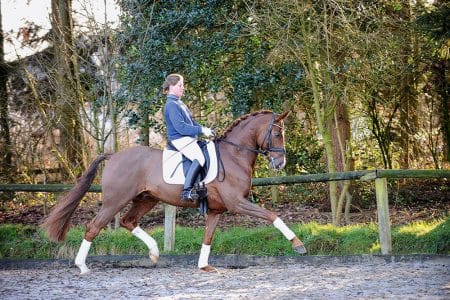 Eher ein Geheimtipp sind die Nachkommen des Dimaggio-Sohns Demirel. Der von der Familie Hölscher aus Gehrde gezogene Hengst deckte im Rheinland bei Ferienhof Stücker – nun machen seine 5 und 6-jährigen Kinder mit viel Talent in Jungpferdeprüfungen auf sich aufmerksam. Dimaggios Blut ist aktuell und gefragt: Aktuell Beachtung erhält auch zum Beispiel Dimagico, Hannoveraner Prämienhengst aus dem Jahr 2016, der auf dem Gestüt Bonhomme deckt. Auffällig waren dessen Schritt und Rittigkeitsnoten der Hengstleistungsprüfung: Mit 9,0 und 9,25 wurden diese bewertet, genauso wie Leistungsbereitschaft, Interieur und Charakter. Noten, die sich mit der Beschreibungen der Nachkommen durch Suzanne Lavandera decken. Und die hat als Hengsthalterin Dimaggios und Züchterin wie Reiterin nun einige gesehen und selbst angeritten. Ab 2004 deckte Dimaggio für einige Jahre auf dem Gestüt Vorwerk in Deutschland, dann kehrte er nach England zurück. Seine letzten Zuchtjahre verbrachte Dimaggio wieder in Deutschland auf der Station Böckmann, wo er von 2013 an bis zu seinem Tod als Deckhengst zu beziehen war. „Wir haben damals gezielt wieder nach einem DBlutHengst gesucht“, berichtet Wiebke Hammermann, Besamungswartin bei Böckmann und zuständig für die Hengste dort. „Dimaggio war ein bewährter Hengst, und es gab viele Jahrgänge auf den Weltmeisterschaften der Jungen Pferde, auf denen Dimaggio-Kinder stets weit vorn waren!“ Er war in diesen Jahren einer der Hengste bei Böckmann, die die meisten Stuten bekamen.