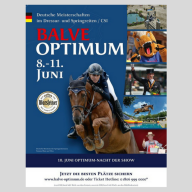 Ihre Förderung des Sports und die starke Verbundenheit zum Balve Optimum unterstreicht die NÜRNBERGER Versicherung dadurch, dass sie zudem die Meisterehrung der Dressurreiter Meister mit ihrem Patronat begleitet und durch die Ausstattung des Führzügelwettbewerbs die gesamte Vielfalt der Disziplin aufzeigt, von Kindesbeinen an bis zum Championatsniveau.