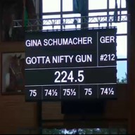 Als letzte Starterin ritt Gina Maria Schumacher im Sattel von „Gotta Nifty Gun“ in die Arena. Konzentriert begann sie ihre Prüfung, setzte ihr großes Können um und zeigte wie im Go-round eine perfekte Show. Alle Manöver wurden abermals korrekt ausgeführt. Am Ende ihrer Vorstellung wollte der Beifall und das Trampeln der Besucher auf den Tribünen nicht enden. Nach dem „Knuddeln“ ihres Vierbeiners und beim Ausritt standen auf der Anzeigetafel 224,5 Punkte. Sieg, Weltmeistertitel und ihre zweite Goldmedaille waren ihr Lohn.