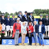 Pro Runde leisteten sich die Österreicher lediglich einen Abwurf, der dank Streichergebnis nicht für das Endranking zählte. Anton Martin Bauer, Chef d’Equipe der Reiter aus der Alpenregion erklärte woran das lag: „Wir haben ein sehr gutes Team und hier die besten vier Reiter dabei gehabt, aber noch viel wichtiger ist, dass das Team einfach zusammengehalten hat und deshalb haben wir gewonnen.“ Dieses Siegerteam bildeten Dominik Juffinger mit Redley Kerfontaine, Marie Christine Sebesta mit Jp’s Winzerin, Anna Markel mit Cascaro und Lisa Maria Räuber mit Cuyano. „In Hagen zu gewinnen das ist etwas Besonderes, weil es kein besseres Turnier im Jugendbereich gibt – es ist alles top organisiert und ich glaube, bessere Bedingungen werden wir für unsere Pferde nirgends finden“, ergänzte Bauer, der heute Abend erstmal einen ausgeben werde. Auf dem Silberrang fanden sich gleich zwölf Reiter wieder, denn alle drei Teams aus Deutschland, Irland und Frankreich beendeten den Nationenpreis mit 8 Strafpunkten. Für die Gastgeber um Equipechef Peter Teeuwen sah es nach Runde eins noch super aus, drei Starter blieben null – dieses Ergebnis konnte in Runde zwei jedoch nur noch Laura Hetzel halten. Max Haunhorst, Beeke Carstensen und Kathrin Stolmeijer kassierten je einen Hindernisfehler.