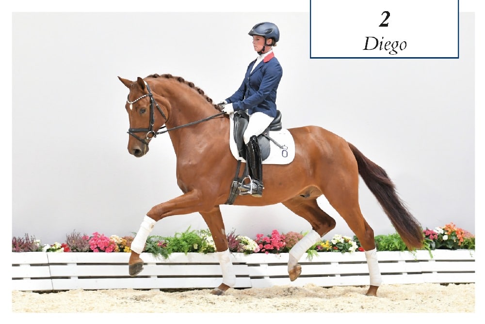 Majestätisch, bewegungsstark und edel: Der vierjährige Diego v. Destano – Argentinus – Rohdiamant. Grand Prix-Adel schmückt die Ahnengalerie dieses Bewegungskönigs, darunter Spirit of the Age OLD unter Bernadette Brune, Sir Caramello unter Ashley Holzer, Kanada, und der Vererber Veneno v. Vitalis.