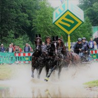 Der 50jährige Vierspännerfahrer möchte nun bei den Europameisterschaften in Göteborg versuchen, mit dem deutschen Team eine Medaille zu gewinnen. Auf den dritten Platz (96.40) im Gelände fuhr Michael Brauchle (Lauchheim), der wieder seine Fähigkeiten in dieser Teildisziplin unter Beweis stellen konnte. Marathonfahren ist ein Publikumsmagnet. Nach einer langen Wegstrecke ging es in das spannendste Teilstück, die Fahrt durch die sieben Hindernisse, inklusive Wasserdurchfahrt und Spritzfontänen. Die Zuschauer applaudierten bei jedem Gespann. Und mit jedem Teilnehmer erhöhte sich die Spannung, denn es wurde in umgekehrter Reihenfolge nach dem Dressurtag gefahren. Am letzten Hindernis stand erst fest, wer der Sieger wurde.