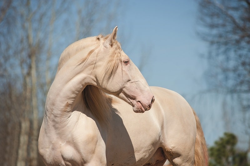 perlino lusitano horse with blue sky background